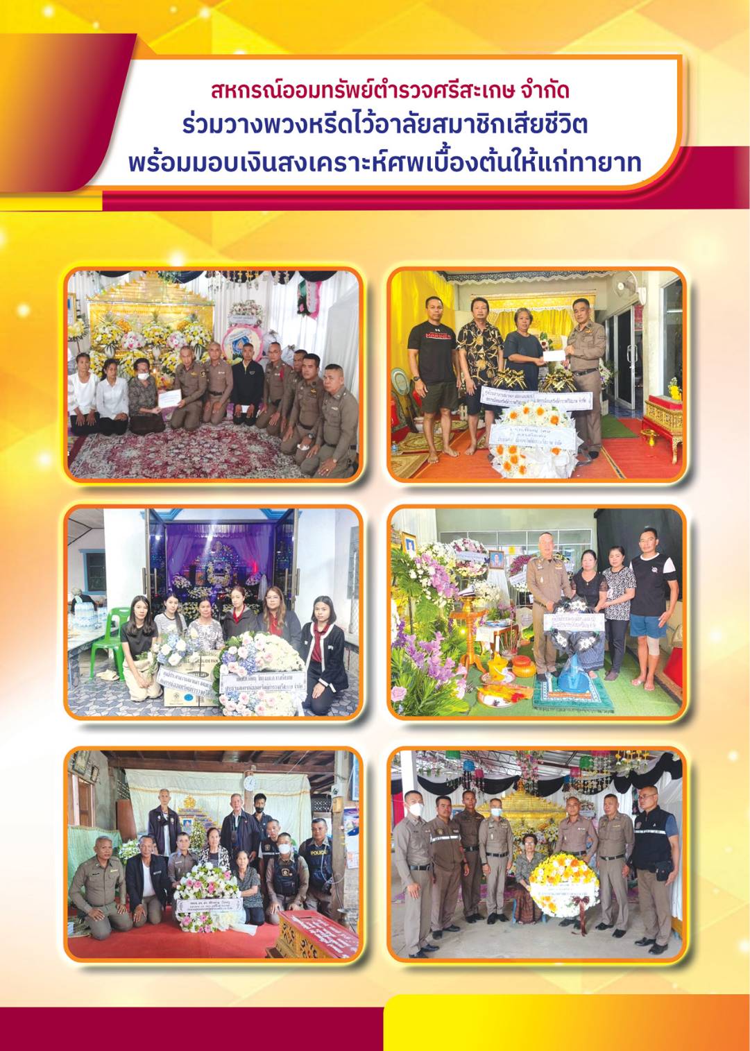ร่วมวางพวงหรีดไว้อาลัยสมาชิกเสียขีวิตพร้อมมอบเงินสงเคราะห์ศพ
