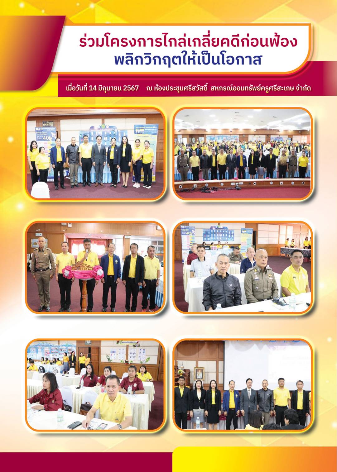 ร่วมโครงการไกล่เกลี่ยคดีก่อนฟ้อง 14 มิถุนายน 2567